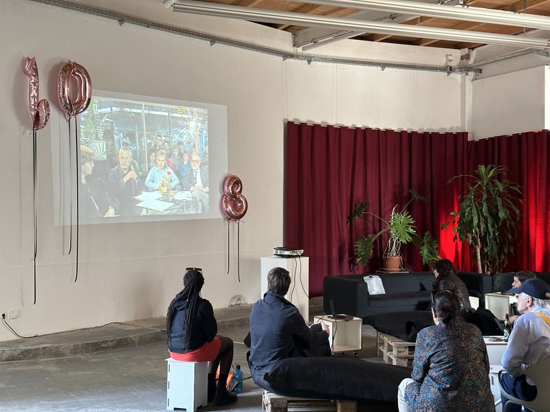 informelle Gespräche über Filme, ein Stop and Go an der Bar und loungige Musik. Zwischen den Programmpunkten treffen sich hier Publikum, Filmemacher:innen, Fachpublikum, Kurator:innen und das Festivalteam zum Austausch. Auch die Get together mit moderierter Diskussion zu Filmthemen finden hier statt. Der inspirierende Raum wurde von »The Ferry Crew« aus Dresden und dem Festivalteam gestaltet.