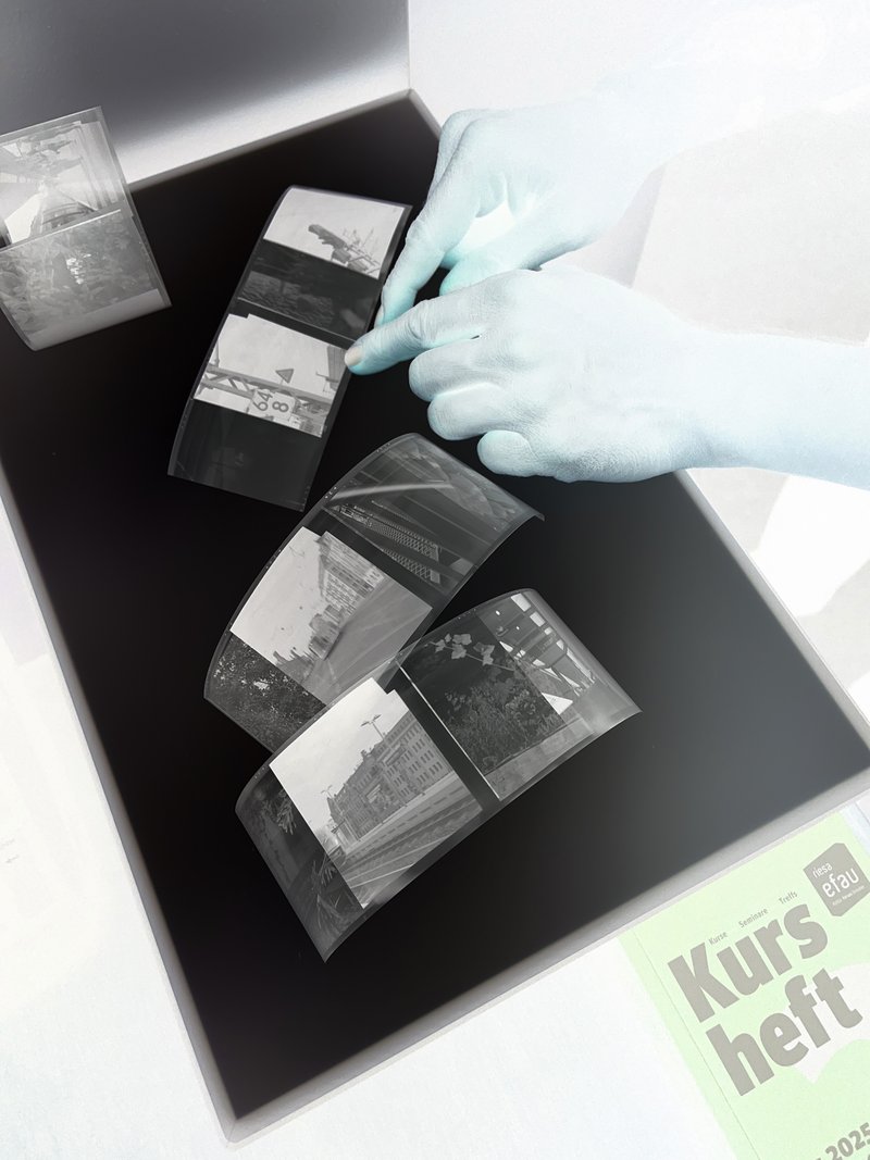 Auf den Spuren der Lomografiebewegung, die ihren Anfang in den 80er Jahren nahm, denken wir in diesem Workshop den Mittelformatfilm und seine Handhabung über die Split-Fotografie neu. Durch eine handgefertigte Maske wird nur das halbe Motiv belichtet und die Maske nach dem Rückspulen der Filmkartusche getauscht. Nach dem Zufallsprinzip werden im Anschluss die Kameras unter den Teilnehmenden gemischt und die zuvor maskierten Motive durch erneutes Fotografieren ergänzt. Zusammen entwickeln wir die schwarz-weiß Filme mit Kaffee.